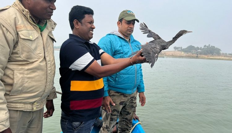 ଚିଙ୍ଗୁଡ଼ି ଘେରିରେ ଫସିଥିଲା ପାଣିକୁଆ, ପକ୍ଷୀଗଣନାକାରୀ ଉଦ୍ଧାର କରିବା ପରେ ଉଡିଗଲା ଦୂର ଆକାଶକୁ