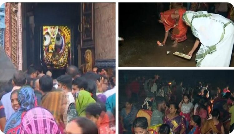 ପୁରୀ: ଆଜି ମହାପଞ୍ଚୁକ ବ୍ରତର ଶେଷ ଦିନ । ଅର୍ଥାତ୍ ଆଜି ହେଉଛି ପବିତ୍ର କାର୍ତ୍ତିକ ପୂର୍ଣ୍ଣିମା ବା ଡଙ୍ଗା ଭସା । ଆଜି ସୁନାବେଶ ବା ରାଜରାଜେଶ୍ବର ବେଶରେ ପର୍ଶନ ଦେଉଛନ୍ତି ମହାପ୍ରଭୁ । ସୁନାବେଶ ଦର୍ଶନ କରିବା ଲାଗି ଶ୍ରୀକ୍ଷେତ୍ର ପ୍ରବଳ ଭିଡ ପରିଲକ୍ଷିତ ହୋଇଛି । ବିଶ୍ବାସ ରହିଛି ଆଜିର ଦିନରେ ମହାପ୍ରଭୁଙ୍କର ଏହି ଦୁର୍ଲଭ ବେଶ ଦର୍ଶନ କଲେ କୋଟି ଜନ୍ମର ପୁଣ୍ୟ ଫଳ ପ୍ରାପ୍ତି ହୋଇଥାଏ । ରବିବାର ରାତିଠୁ ସୋମବାର ରାତି ପର୍ଯ୍ୟନ୍ତ ପହୁଡ ନୀତି ବନ୍ଦ ରହିଛି । ସେପଟେ ଭକ୍ତଙ୍କ ସମାଗମକୁ ଆଖି ଆଗରେ ରଖି ପୋଲିସ ପ୍ରଶାସନ ପକ୍ଷରୁ ସୁରକ୍ଷା ବ୍ୟବସ୍ଥାକୁ କଡାକଡି କରାଯାଇଛି ।