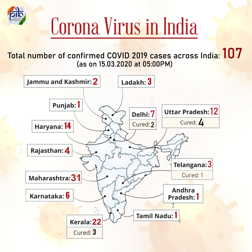 ନୂଆଦିଲ୍ଲୀ: ସାରା ବିଶ୍ୱରେ କରୋନାର ପ୍ରକୋପ । ଚୀନରୁ ଆସିଥିବା କରୋନା ସାରା ବିଶ୍ୱରେ ହାହାକାର ସୃଷ୍ଟି କରିଛି । ଦେଶରେ ମଧ୍ୟ କରୋନା ମୁକାବିଲା ନେଇ ଯୁଦ୍ଧଭିତ୍ତି କ ସ୍ତରରେ ପ୍ରସ୍ତୁତି ଚାଲିଛି । ଦେଶରେ କରୋନା ଆକ୍ରାନ୍ତଙ୍କ ସଂଖ୍ୟା ୧୦୭ରେ ପହଞ୍ଚିଛି ଏବଂ ୨ଟି କରୋନା ଜନିତ ମୃତ୍ୟୁ ସ୍ପଷ୍ଟ କରାଯାଇଛି ।