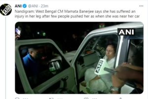 ମନ୍ଦିରରୁ ପୂଜା ସାରି ଫେରୁଥିବା ବେଳେ ଏହି ଆକ୍ରମଣ କରାଯାଇଥିବା ମମତା କହିଛନ୍ତି । ସୁରକ୍ଷା ବ୍ୟବସ୍ଥା ନିମ୍ନମାନର ଥିବା ବେଳେ ସ୍ଥାନୀୟ ପୋଲିସ ପାଖରେ ନଥିବା ମମତା ଅଭିଯୋଗ ଆଣିଛନ୍ତି । ମମତା ବାନାର୍ଜୀଙ୍କୁ ହସ୍ପିଟାଲରେ ଭର୍ତ୍ତି କରାଯାଇଛି । ତେବେ ଏନେଇ ନିର୍ବାଚନ କମିଶନଙ୍କୁ ଜଣାଇବେ ବୋଲି କହିଛନ୍ତି ମମତା ବାନାର୍ଜୀ ।