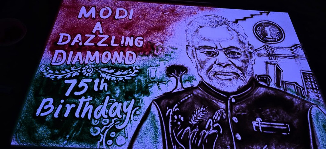 ବର୍ତ୍ତମାନ ଭାରତର ସ୍ଥାନ ସାରା ବିଶ୍ୱରେ ଉଦ୍ୟମାନ ସୂର୍ଯ୍ୟ ଭଳି ଆଲୋକିତ ହେଉଛି। ମୋଦିଙ୍କ ପ୍ରୟାସରେ ଭାରତ ବିକଶିତ ଦେଶ ଭାବରେ ଗଣତି ହେଉଛି। ତାଙ୍କର ୭୫ ତମ ଜନ୍ମଦିନରେ ପ୍ରସିଦ୍ଧ ବାଲୁକା ଶିଳ୍ପୀ ମାନସ କୁମାର ସାହୁ ପ୍ରଭୁ ବିଶ୍ୱକର୍ମା ଏବଂ ନରେନ୍ଦ୍ର ମୋଦିଙ୍କ ପ୍ରତିଛବି ନିର୍ମାଣ କରିଛନ୍ତି। ଏହି ୧ ମିନିଟ ୧୫ ସେକେଣ୍ଡ ଭିଡ଼ିଓକୁ ନିର୍ମାଣ କରିବାକୁ ମାନସ ସାହୁଙ୍କୁ ୨ଘଣ୍ଟା ସମୟ ଲାଗିଥିଲା। ଏଥିରେ ସେ Happy Birthday ର ଶୁଭେଚ୍ଛା ଦେବା ସହ Modi A Dazzling Diamond ର ବାର୍ତ୍ତା ମଧ୍ୟ ଦେଇଛନ୍ତି।