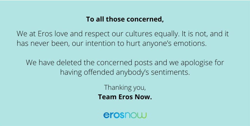 ନୂଆଦିଲ୍ଲୀ: ନବରାତ୍ରୀ ତଥା ଦୁର୍ଗା ପୂଜାର ଗାରିମାକୁ କ୍ଷୁର୍ଣ୍ଣ କରିଛି ଇରୋସ ନାଓ । ସୋସିଆଲ ସାଇଟରେ ଦ୍ୱିଅର୍ଥବୋଧକ ସ୍ଲୋଗାନ ଦେଇ ଶସ୍ତା ଲୋକପ୍ରିୟତା ଆପଣାଇ ଲକ୍ଷ୍ୟରେ ଥିବା ଏହି କମ୍ପାନୀକୁ କିନ୍ତୁ ଜନସାଧାରଣ ସୋସିଆଲ ସାଇଟରେ କଡା ଜବାବ ଦେଇଛନ୍ତି । ଶେଷର ନିଜ ଭୁଲ ବୁଝି ଇରୋସ ନାଓ ସର୍ବସାଧାରଣରେ କ୍ଷମା ମାଗିବା ସହ ବିବାଦୀୟ ବିଜ୍ଞାପନକୁ ହଟେଇବାକୁ ବାଧ୍ୟ ହୋଇଛି ।