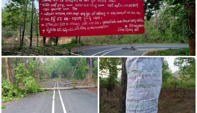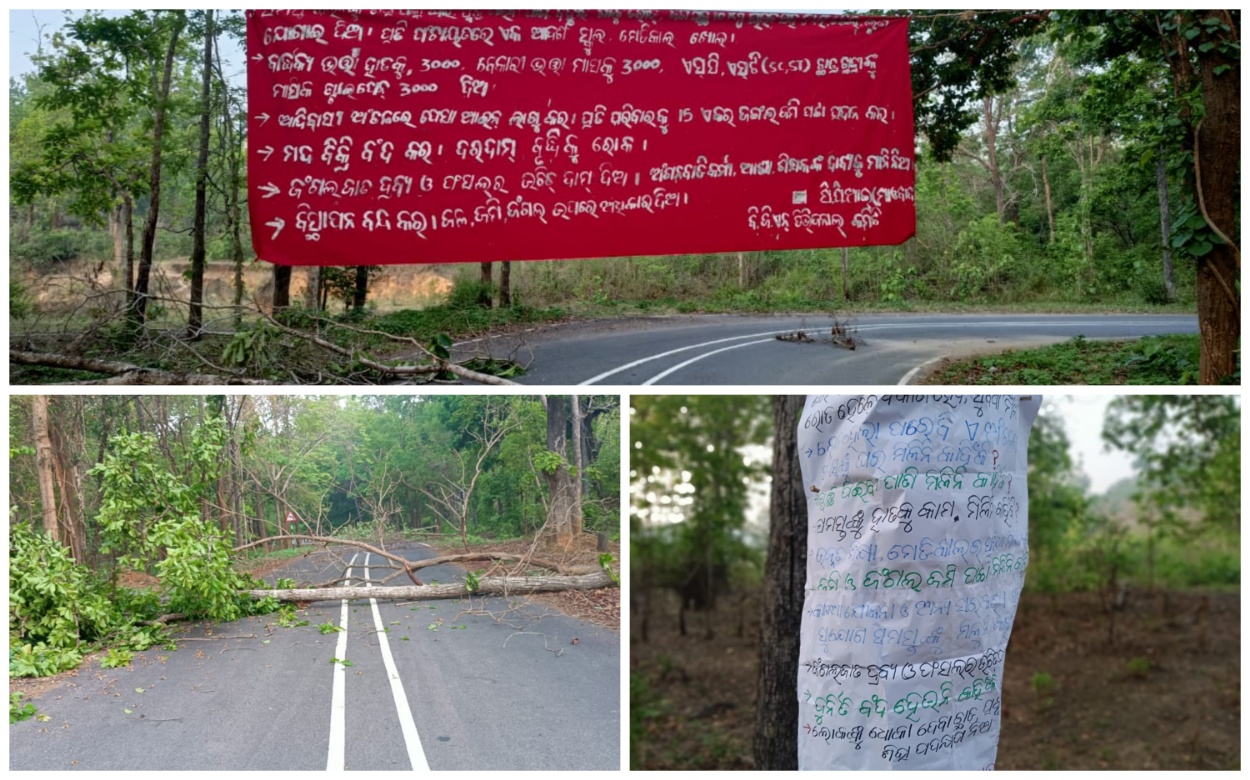 ନକ୍ସଲ ସଂଗଠନ ମାନେ ରାସ୍ତାରେ ପୋଷ୍ଟର ଲଗାଇଛନ୍ତି । ଯେଉଁ ପୋଷ୍ଟରରେ ଉଲ୍ଲେଖ ରହିଛି ଆଜି ବି ଗରିବ ଲୋକେ ଶିକ୍ଷା, ସ୍ବାସ୍ଥ୍ୟ, ଆବାସ ଯୋଜାନା ପାଇବାରୁ ବଞ୍ଚିତ ରହିଛନ୍ତି । ଗତ୧୨ ତାରିଖରେ ସିପିଆଇ ମାଓବାଦୀ ସଂଗଠନ ପକ୍ଷରୁ ଏକ ଅଡିଓ ଟ୍ୟାପ ଜାରି କରି ମେ ୧୫ ତାରିଖ ଦିନ ୧୨ ଦଫା ଦାବି ନେଇ ୭ ଜିଲା ରେ ବନ୍ଦ ପାଳନ ନିମନ୍ତେ ଆହ୍ଵାନ କରିଥିଲେ।