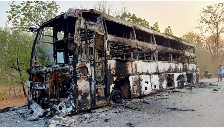 ବସ୍‌ରେ ନିଆଁ ଲଗାଇଲେ ନକ୍ସଲ, ଓଡ଼ିଶାରୁ ହାଇଦ୍ରାବାଦ ଯାଉଥିଲେ ୫୦ ଯାତ୍ରୀ