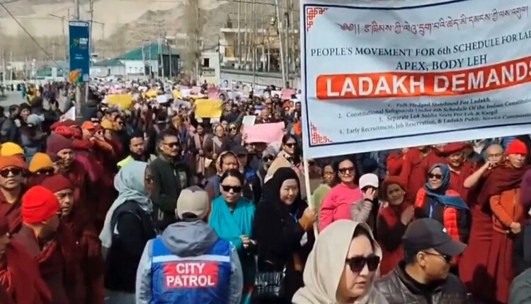 Ladakh protest: ଲଦାଖରେ ବିଶାଳ ପ୍ରତିବାଦ ;ରାଜ୍ୟ ମାନ୍ୟତା ଦାବି କରି ରାସ୍ତାକୁ ଓହ୍ଲାଇଲେ…