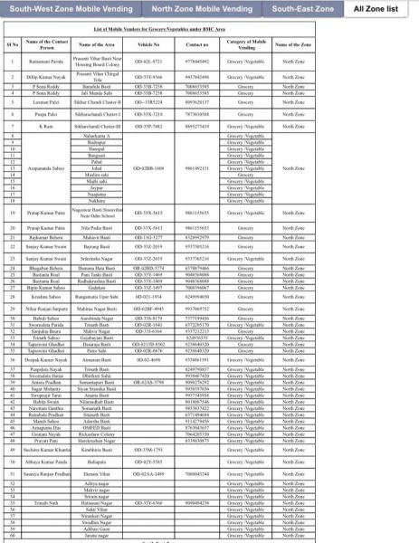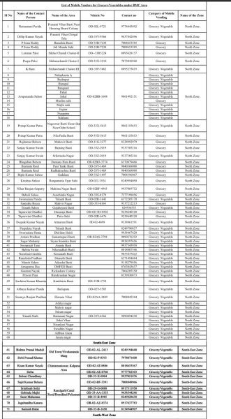 ଭୁବନେଶ୍ୱର : ଲକ୍ ଡାଉନ ବେଳେ ସହରରେ ଲୋକଙ୍କ ଘର ପାଖକୁ ମୋବାଇଲ ଭ୍ୟାନ ପନିପରିବା ଓ ଗ୍ରୋସରୀ ପହଞ୍ଚାଉଛି । ବିଏମସି ପକ୍ଷରୁ ଆଜି ୨୦୦ଟି ଭ୍ୟାନ ଅତ୍ୟାବଶ୍ୟକ ସାମଗ୍ରୀ ନେଇ ବିଭିନ୍ନ ଅଞ୍ଚଳରେ ବିକ୍ରି କରାଯାଉଛି । ତେବେ କେଉଁ ଅଞ୍ଚଳରେ କେଉଁ ଭ୍ୟାନକୁ ଫୋନ କଲେ ଏହି ସାମଗ୍ରୀ ଆପଣଙ୍କୁ ଘରେ ମିଳିପାରିବ ସେ ନେଇ ବିଏମସି ଓ କମିଶନରେଟ ପୋଲିସ ପକ୍ଷରୁ ଏକ ତାଲିକା ଦିଆଯାଇଛି ।