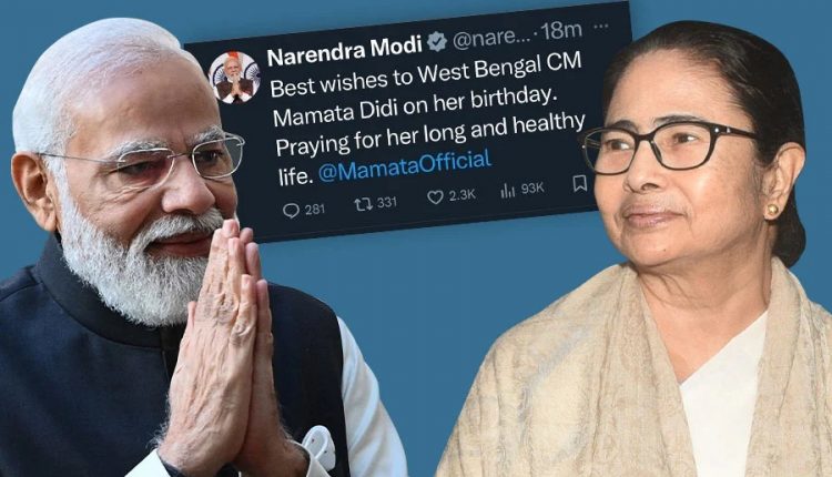 ନୂଆଦିଲ୍ଲୀ: ପଶ୍ଚିମବଙ୍ଗ ମୁଖ୍ୟମନ୍ତ୍ରୀ ଏବଂ ତୃଣମୂଳ କଂଗ୍ରେସ ମୁଖ୍ୟ ମମତା ବାନାର୍ଜୀଙ୍କ ଜନ୍ମଦିନ । ପ୍ରଧାନମନ୍ତ୍ରୀ ନରେନ୍ଦ୍ର ମୋଦି ମମତା ବାନାର୍ଜୀଙ୍କ ଜନ୍ମଦିନରେ ଏକ ସ୍ୱତନ୍ତ୍ର ଉପାୟରେ ଶୁଭେଚ୍ଛା ଜଣାଇଛନ୍ତି। ସୋସିଆଲ ମିଡିଆ ପ୍ଲାଟଫର୍ମ X ରେ ଏକ ପୋଷ୍ଟ ସେୟାର କରି ପ୍ରଧାନମନ୍ତ୍ରୀ ମୋଦି ମମତା ବାନାର୍ଜୀଙ୍କୁ “ଦିଦି” ବୋଲି ସମ୍ବୋଧନ କରିଛନ୍ତି ଏବଂ ତାଙ୍କ ଉତ୍ତମ ସ୍ୱାସ୍ଥ୍ୟ ଏବଂ ଦୀର୍ଘ ଜୀବନ ପାଇଁ ପ୍ରାର୍ଥନା କରିଛନ୍ତି। ପ୍ରଧାନମନ୍ତ୍ରୀ ମୋଦି ଲେଖିଛନ୍ତି, ‘ପଶ୍ଜିମ ବଙ୍ଗର ମୁଖ୍ୟମନ୍ତ୍ରୀ ମମତା ଦିଦିଙ୍କୁ ଜନ୍ମଦିନର ଅନେକ ଅନେକ ଶୁଭେଚ୍ଛା। ମୁଁ ତାଙ୍କ ଉତ୍ତମ ସ୍ୱାସ୍ଥ୍ୟ ଏବଂ ଦୀର୍ଘ ଜୀବନ ପାଇଁ ପ୍ରାର୍ଥନା କରୁଛି।’ ମୋଦିଙ୍କର ଏପରି ଶୁଭେଚ୍ଛା ବାର୍ତ୍ତା ବେଶ ଭାଇରାଲ ହେଉଛି ।