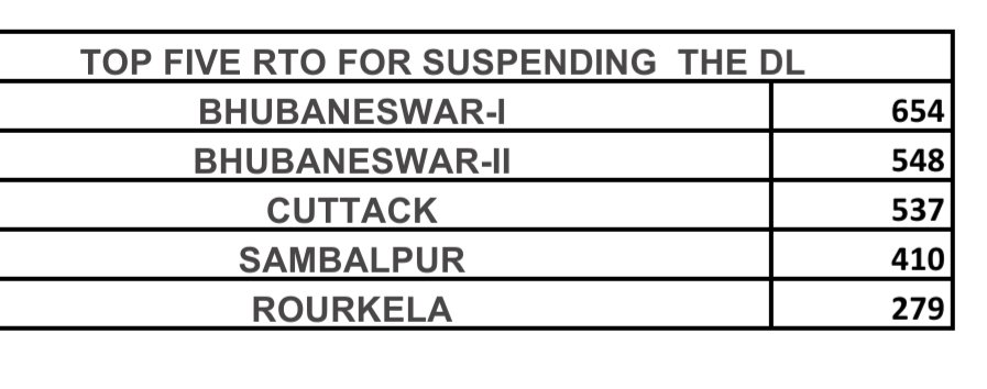 ଭୁବନେଶ୍ୱର ଆରଟିଓ-୧ ପରିସରରୁ ସର୍ବାଧିକ ୬୫୪, ଭୁବନେଶ୍ୱର ଆରଟି-୨ ଅଧୀନରେ ୫୪୮, କଟକରେ ୫୩୭, ସମ୍ୱଲପୁରରେ ୪୧୦ ଓ ରାଉରକେଲା ଆରଟିଓ ଅଧୀନରେ ୨୭୯ ଜଣ ଗାଡ଼ି ଚାଳକଙ୍କ ଡ୍ରାଇଭିଂ ଲାଇସେନ୍ସ ତିନି ମାସ ପାଇଁ ରଦ୍ଦ କରାଯାଇଛି । ଏବେ ପଛରେ ବସିଥିବା ଲୋକ ବି ହେଲମେଟ୍ ପିନ୍ଧିବା ବାଧ୍ୟତାମୂଳକ ହୋଇଛି ।