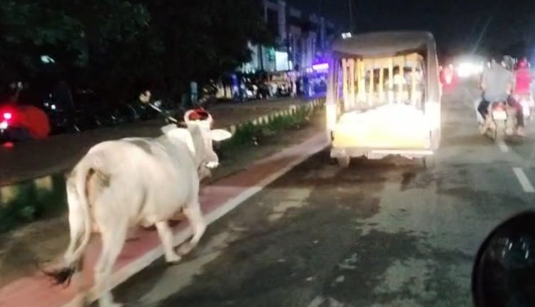 ମଲା ବାଛୁରୀକୁ ଝୁରି ଝୁରି ଗାଡ଼ି ପଛରେ ଧାଉଁଛି ମା ଗାଈ