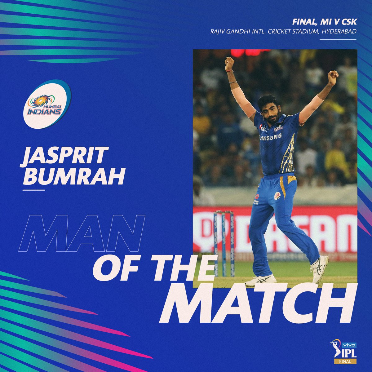 ସେ ମାତ୍ର ୫୯ ବଲରୁ ମୂଲ୍ୟବାନ ୮୦ ରନ କରିଥିଲେ । ଅନ୍ୟ ବ୍ୟାଟ୍ସମ୍ୟାନଙ୍କ ମଧ୍ୟରେ ଡ୍ୟୁ ପ୍ଲେସିସ ଆକର୍ଷଣୀୟ ୨୬ ରନ ଏବଂ ଡ଼ିଅନ ବ୍ରାଭୋ ୧୫ ରନ କରିପାରିଥିଲେ । ମୁମ୍ବାଇ ବୋଲର୍ ଯଶପ୍ରିତ ବୁମରା ମାତ୍ର ୧୪ ରନ ଦେଇ ୨ଟି ୱିକେଟ ଅକ୍ତିଆର କରିଥିଲେ । ସେହିପରି ଷ୍ଟାର୍ ବୋଲର୍ ଲସିଥ୍ ମାଲିଙ୍ଗା ଅନ୍ତିମ ବଲରେ ୱିକେଟ ନେଇ ଦଳକୁ ଚମ୍ପିଆନ କରାଇ ପାରିଛନ୍ତି ।