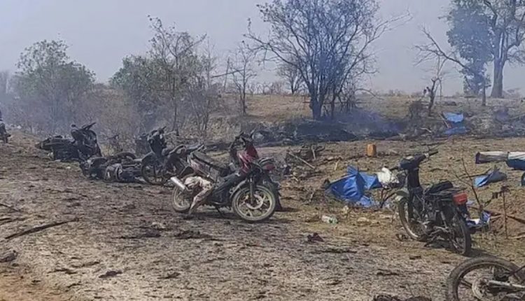 ସାମିରକ ଶାସନ ବିରୋଧରେ ମେଳି ବାନ୍ଧିଥିବା କିଛି ସାଧାରଣ ଲୋକଙ୍କ ଉପରେ ବୋମା ଫିଙ୍ଗିଛି ମିଆଁମାର ସେନା ଜୁନ୍ତା। ଏଥିରେ ୧୦୦ ଜଣଙ୍କର ମୃତ୍ୟୁ ହୋଇଥିବା ବେଳେ ଏକାଧିକ ଆହତ ହୋଇଛନ୍ତି। ମୃତକଙ୍କ ମଧ୍ୟରେ ଛୋଟପିଲାମାନେ ବି ଅଛନ୍ତି। ମିଆଁମାର ସେନା ଜୁନ୍ତା ଏୟାର୍ ଷ୍ଟ୍ରାଇକ୍ କରିଥିବା ନିଜେ ନେଇ ସୂଚନା ଦେଇଛି।