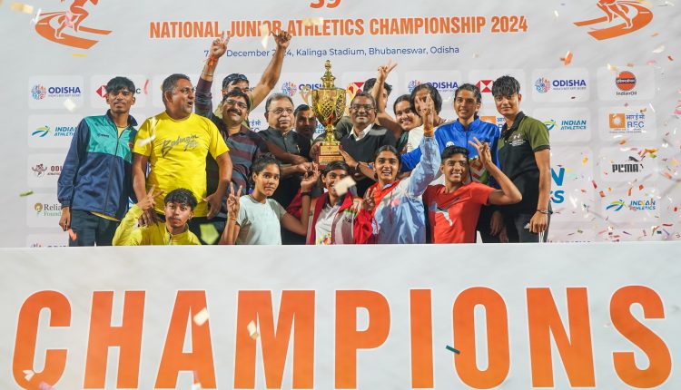 ଭୁବନେଶ୍ୱର: କଳିଙ୍ଗ ଷ୍ଟାଡିୟମରେ ୩୯ତମ ଜାତୀୟ ଜୁନିୟର ଆଥଲେଟିକ୍ସ ଚାମ୍ପିୟନ ଉଦଯାପିତ ହୋଇଯାଇଛି । ହରିୟାଣା ଟିମ ଓଭରାଲ ୩୦୩ ପଂଏଟ ସହ ଚାମ୍ପିୟନ ହୋଇଥିବା ବେଳେ ତାମିଲନାଡୁ ୨୬୯ ପଂଏଟ ପାଇ ରନର୍ସଅପ ହୋଇଛି । ପୁରୁଷ ଏବଂ ମହିଳା ବିଭାଗରେ ମଧ୍ୟ ହରିୟାଣା ଚାମ୍ପିୟନ ହୋଇଛି । ଓଡିଶା ଆଥଲେଟ ଏହି ଚାମ୍ପିୟନଶିପରେ ୬ଟି ସ୍ୱର୍ଣ୍ଣ, ୨ଟି ରୌପ୍ୟ ଓ ୩ଟି ବ୍ରୋଞ୍ଜ ପଦକ ସହ ଓଭରାଲ ୧୧ ପଦକ ହାସଲ କରଛନ୍ତି । ଦଣ୍ଡପତି ମୃତ୍ୟମ ଜୟରାମ ୨୦ ବର୍ଷରୁ କମ ପୁରୁଷ ବିଭାଗରେ ୧୦୦, ୨୦୦ ଓ ୪ ଗୁଣନ ୧୦୦ରେ ସ୍ୱର୍ଣ୍ଣ ପଦକ ହାସଲ କରିଥିଲେ । ରିଲେ ଟିମରେ ଅସ୍ତିକ ପ୍ରଧାନ, ମହେନ୍ଦ୍ର ସାନ୍ତା ଓ ରାଜେନ୍ଦର ସିଦ୍ଧୁ ରହିଥିଲେ ।