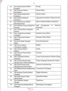 ବିଭିନ୍ନ ବିଭାଗ ଉପରେ ନିଘା ରଖିବା ପାଇଁ ଦାୟିତ୍ୱ ବାଣ୍ଟିଲେ ନବୀନ ପଟ୍ଟନାୟକ। ସରକାରଙ୍କ କାର୍ଯ୍ୟ ଉପରେ ନିଘା ରଖିବାକୁ ନିଜ ବିଧାୟକଙ୍କୁ ଦାୟିତ୍ୱ ବାଣ୍ଟିଲେ। ରାଜା ସ୍ୱାଇଁଙ୍କୁ ରାଜସ୍ୱ ବିଭାଗ, ପ୍ରମିଳାଙ୍କୁ ପଞ୍ଚାୟତିରାଜ ବିଭାଗ, ବଦ୍ରିଙ୍କୁ ମହିଳା ଓ ଶିଶୁ ବିକାଶ ବିଭାଗ, ନିରଞ୍ଜନ ପୂଜାରୀଙ୍କୁ ଗୃହ ବିଭାଗ, ପ୍ରସନ୍ନ ଆଚାର୍ଯ୍ୟଙ୍କୁ ଅର୍ଥ ବିଭାଗ, ପ୍ରତାପ ଦେବଙ୍କୁ ଜିଏ, ଅରୁଣଙ୍କୁ ଜଳ ସଂପଦ ବିଭାଗ, ବ୍ରଜ ପ୍ରଧାନଙ୍କୁ ସ୍ୱାସ୍ଥ୍ୟ ବିଭାଗ, ରାଜେନ୍ଦ୍ର ଢୋଲକିଆଙ୍କୁ ଗଣଶିକ୍ଷା ବିଭାଗରେ ଦାୟିତ୍ୱ ବାଣ୍ଟିଛନ୍ତି ନବୀନ ପଟ୍ଟନାୟକ।