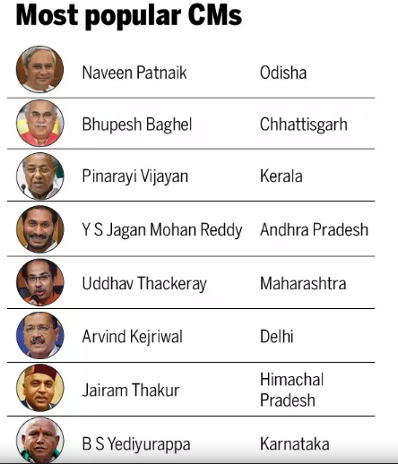 ଲୋକପ୍ରିୟତା କ୍ଷେତ୍ରରେ ଦ୍ୱିତୀୟ ସ୍ଥାନରେ ରହିଛନ୍ତି ଛତିଶଗଡ ମୁଖ୍ୟମନ୍ତ୍ରୀ ଭୂପେଶ ବାଘଲେ । ତାଙ୍କୁ ମିଳିଛି ୮୧ ଦଶମିକ ୦୬ ପ୍ରତିଶତ ମତ । ତୃତୀୟ ସ୍ଥାନରେ କେରଳର ପିନାରାୟ ବିଜୟନ, ଚତୁର୍ଥ ସ୍ଥାନରେ ଆନ୍ଧ୍ରପ୍ରଦେଶ ମୁଖ୍ୟମନ୍ତ୍ରୀ ୱାଇ. ଏସ୍‌. ଜଗନ ମୋହନ ରେଡ୍ଡି, ପଞ୍ଚମରେ ମହାରାଷ୍ଟ୍ର ମୁଖ୍ୟମନ୍ତ୍ରୀ ଉଦ୍ଧବ ଠାକରେ, ଷଷ୍ଠ ସ୍ଥାନରେ ଦିଲ୍ଲୀ ମୁଖ୍ୟମନ୍ତ୍ରୀ ଅରବିନ୍ଦ କେଜ୍ରିୱାଲ ରହିଛନ୍ତି ।