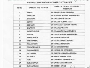 ଅନ୍ୟପକ୍ଷେ, ବିଜେଡିର ସାଂଗଠନିକ ନିର୍ବାଚନ ପ୍ରକ୍ରିୟା ଆରମ୍ଭ ହୋଇଯାଇଥିବା ବ‌େଳେ, ମଙ୍ଗଳବାର ୧୮ଟି ଜିଲ୍ଲା ପାଇଁ ସଭାପତିଙ୍କ ନାମ ଘୋଷଣା ହୋଇଛି । ବିଜେଡିର ସାଗଂଠନିକ ନିର୍ବାଚନରେ ୩୩ ସାଗଂଠନିକ ଜିଲାରୁ ୧୮ଟି ଜିଲା ସଭାପତିଙ୍କ ନାଁ ଘୋଷଣା ହୋଇଛି । ଏହି ତାଲିକାରେ ବରିଷ୍ଠ ତଥା ଅଭିଜ୍ଞ ନେତାଙ୍କୁ ଗୁରୁତ୍ବ ଦିଆଯାଇଛି ।