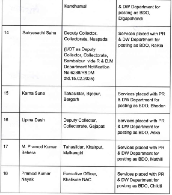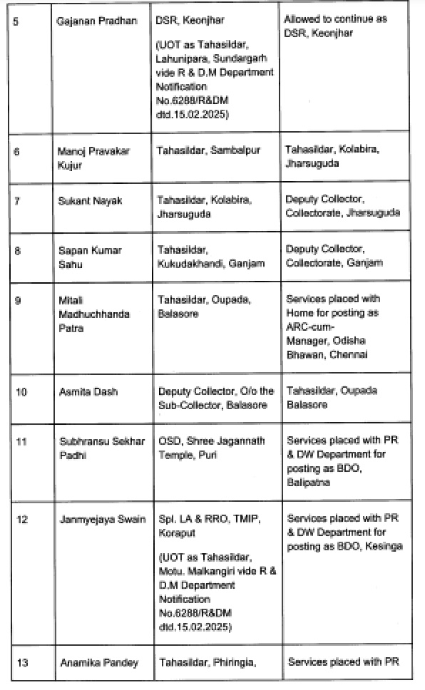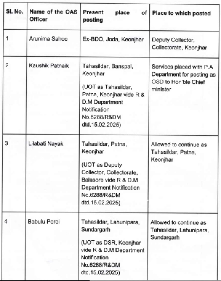 ତେବେ ରାଜସ୍ୱ ବିଭାଗ ଦ୍ୱାରା ଜାରି ବିଜ୍ଞପ୍ତିରେ ୧୮ ଜଣ ଓଏଏସ୍ ଅଧିକାରୀଙ୍କୁ ନୂତନ ନିଯୁକ୍ତି ପ୍ରଦାନ କରାଯାଇଛି। ଜାଣନ୍ତୁ କିଏ କେଉଁଠି…