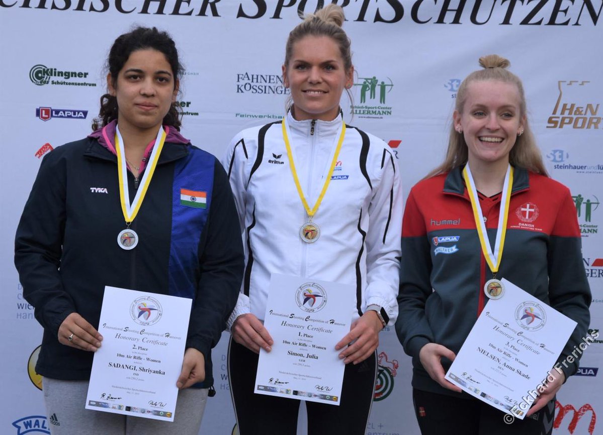 ହାନୋଭର: ମାତ୍ର ୮ ଦିନ ମଧ୍ୟରେ ଉଦୀୟମାନ ଓଡ଼ିଆ ମହିଳା ସୁଟର୍ ଶ୍ରୀୟଙ୍କା ଷଡ଼ଙ୍ଗୀ ସ୍ୱର୍ଣ୍ଣ ସହିତ ତିନି ତିନୋଟି ପଦକ ହାସଲ କରି ଓଡ଼ିଶା ତଥା ସମଗ୍ର ଭାରତକୁ ଗୌରବାନ୍ୱିତ କରିଛନ୍ତି । ଶ୍ରୀୟଙ୍କା ଜର୍ମାନୀର ହାନୋଭରଠାରେ ଚାଲିଥିବା ଏଚ ଏଣ୍ଡ ଏନ କପ ଅନ୍ତର୍ଜାତୀୟ ସୁଟିଂ ପ୍ରତିଯୋଗିତାର ୧୦ ମିଟର୍ ମହିଳା ଏୟାର୍ ରାଇଫଲ୍ ବ୍ୟକ୍ତିଗତ ବିଭାଗରେ ୨ୟ ସ୍ଥାନ ହାସଲ କରି ଏକ ରୌପ୍ୟ ପଦକ ଜିତିପାରିଛନ୍ତି ।