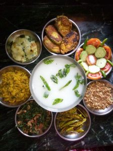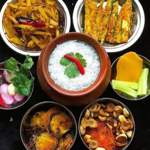 ଚିଙ୍ଗୁଡ଼ି ଛେଚା, ଚୂନା ମାଛ, ପତ୍ରପୋଡ଼ା ଚିଙ୍ଗୁଡ଼ି, ପତ୍ରପୋଡ଼ା ଚୂନା ମାଛ, ପୋଡ଼ା ମଟନ୍, ତାୱା ସେକା ରୋହି ଓ ଖଙ୍ଗା ମାଛ, ଚିଙ୍ଗୁଡ଼ି ଛେଚା, ପତ୍ରପୋଡ଼ା ଛତୁ, ଛତୁ ଭଜା ସମେତ ଆମିଷ ଓ ନିରାମିଷ ବ୍ୟଞ୍ଜନରେ ପଖାଳ ବେଶ୍ ସ୍ୱାଦିଷ୍ଟ ଲାଗିଥାଏ ।