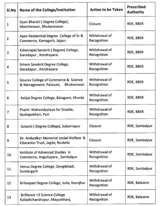 ଅନୁମୋଦନ ପ୍ରତ୍ୟାହାର କରାଯାଇଥିବା ୧୦ କଲେଜର ନାମ ନିମ୍ନରେ ଦିଆଗଲା….