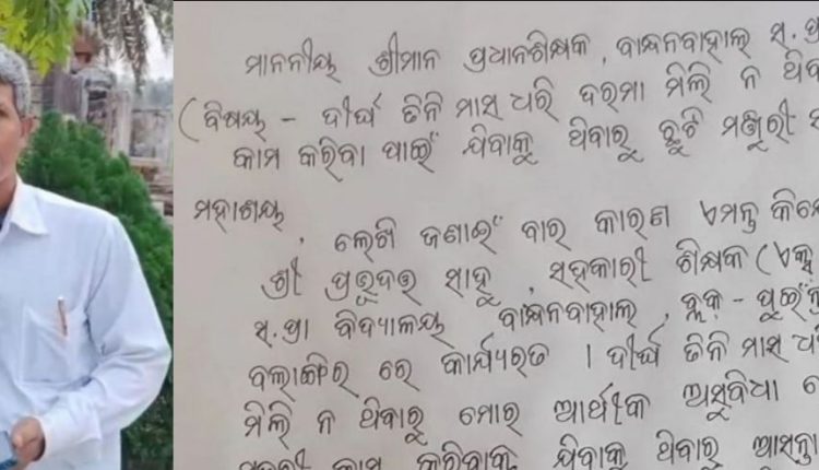 ୩ ମାସ ଦରମା ମିଳିନି: ମୂଲ ଲାଗିବା ପାଇଁ ଛୁଟି ଆବେଦନ କଲେ ଶିକ୍ଷକ