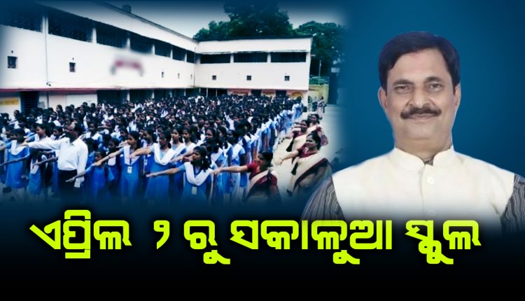 ଭୁବନେଶ୍ୱର : ରାଜ୍ୟରେ ଦିନକୁ ଦିନ ବଢୁଛି ତାତି । ଏହି ସମୟରେ ସ୍କୁଲର ସମୟରେ ପରିବର୍ତ୍ତନ କରିଛନ୍ତି ରାଜ୍ୟ ସରକାର ।ଏନେଇ ସ୍କୁଲ ଓ ଗଣଶିକ୍ଷା ବିଭାଗର ମନ୍ତ୍ରୀ ସମୀର ରଞ୍ଜନ ଦାଶ ସୂଚନା ଦେଇଛନ୍ତି । ଖରା ବଢୁଥିବାରୁ ଏପ୍ରିଲ ୨ ତାରିଖରୁ ସକାଳୁଆ ସ୍କୁଲ ହେବ ।