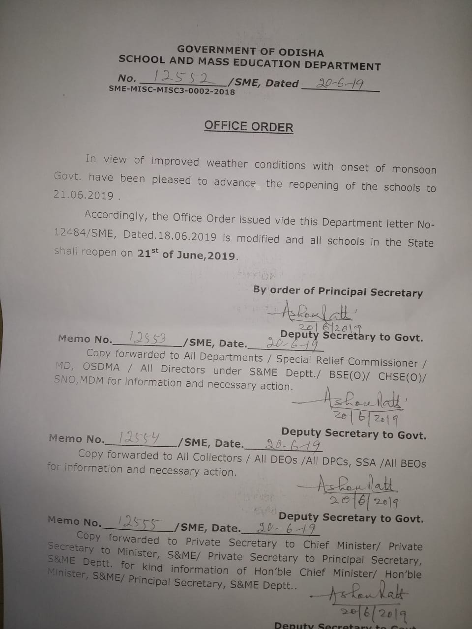 ପ୍ରାପ୍ତ ସୂଚନାନୁଯାୟୀ ଜଳବାୟୁରେ ପରିବର୍ତ୍ତନ ତଥା ଗ୍ରୀଷ୍ମପ୍ରବାହ ଧିରେଧିରେ କମୁଥିବାରୁ ବିଭାଗ ପକ୍ଷରୁ ଏଭଳି ନିଷ୍ପତି ଗ୍ରହଣ କରାଯାଇଥିବା ଜଣାପଡିଛି ।