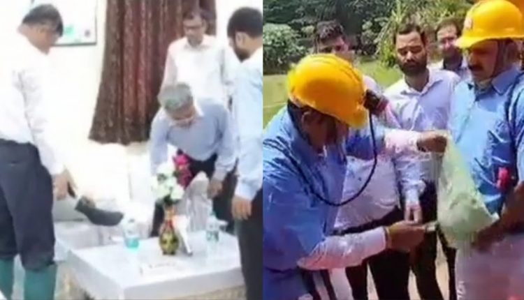 ଧାନବାଦ: କେନ୍ଦ୍ର ମନ୍ତ୍ରୀଙ୍କ ଜୋତା କାଢିଲେ ଓ ପୋଷାକ ସଜାଡିଲେ ଜେନେରାଲ ମ୍ୟାନେଜର।