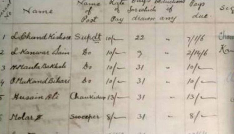 ଇଂରାଜୀ ଭାଷାରେ ଲେଖାଯାଇଛି ଯେ ପ୍ରତି ମାସରେ ସୁପ୍ରିଟେଣ୍ଡେଣ୍ଟ, ସଫେଇ କର୍ମୀ ଓ ଚୌକିଦାରଙ୍କୁ କେତେ ଦରମା ଦିଆଯାଉଛି । ସୁପ୍ରିଟେଣ୍ଡେଣ୍ଟଙ୍କୁ ମାସକୁ ୧୦ଟଙ୍କା, ଚୌକିଦାରଙ୍କୁ ୧୩ ଟଙ୍କା ଏବଂ ସଫେଇ କର୍ମୀଙ୍କୁ ମାସକୁ ୮ ଟଙ୍କା ଦରମା ଦିଆଯାଉଥିଲା । ଦିଲ୍ଲୀର ଏମଏଲ ସରକାରୀ ବାଳକ ସିନିୟର ସେକେଣ୍ଡାରି ସ୍କୁଲର ଏକ ଟିମ୍ ସଦସ୍ୟଙ୍କୁ ପେ ବିଲ୍ ରେଜିଷ୍ଟରର ୯୪ ବର୍ଷ ପୁରୁଣା କପି ମିଳିଛି।