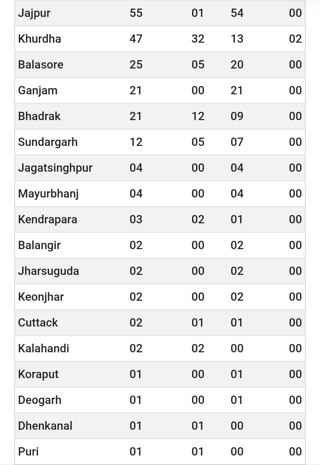 ଜିଲ୍ଲା – ପଜିଟିଭ – ସୁସ୍ଥ – ସକ୍ରିୟମାମଲା- ମୃତ