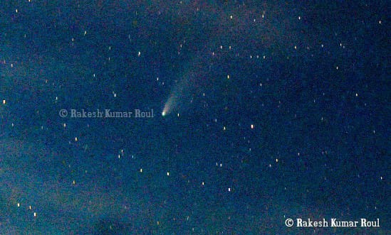 ଆକାଶ ମେଘାଚ୍ଛନ୍ନ, ଅନ୍ଧାରିଆ ଓ ପ୍ରଦୂଷଣ ମୁକ୍ତ ରହିଲେ ହିଁ ଜଣେ ଫଟୋଗ୍ରାଫର ପାଇଁ ଫଟୋ ଉଠାଇବା ସହଜ ହୁଏ । ଚଳିତ ଜୁଲାଇରେ ମୁଁ ଉଠାଇଥିବା ଧୂମକେତୁର ଫଟୋ ପାଇଁ ମୋତେ ରାତି ରାତି ଅନିଦ୍ରା ରହିବାକୁ ପଡିଥିଲା ।