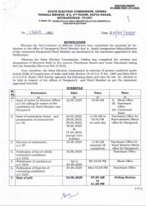 ଏହାପରେ ପଞ୍ଚାୟତ ଅଫିସରେ ଚୂଡ଼ାନ୍ତ ପ୍ରାର୍ଥୀ ତାଲିକା ପ୍ରକାଶ ପାଇବ । ଜୁନ୍ ୨୩ ତାରିଖ ସକାଳ ୭ଟାରୁ ଅପରାହ୍ନ ୧ଟା ପର୍ଯ୍ୟନ୍ତ ମତଦାନ କେନ୍ଦ୍ରରେ ଭୋଟ ଗ୍ରହଣ ହେବ । ୨୪ ତାରିଖ ସକାଳ ୮ରୁ ବ୍ଳକ ଅଫିସରେ ଭୋଟ ଗଣତି ହୋଇ ଫଳାଫଳ ପ୍ରକାଶ ପାଇବ ।