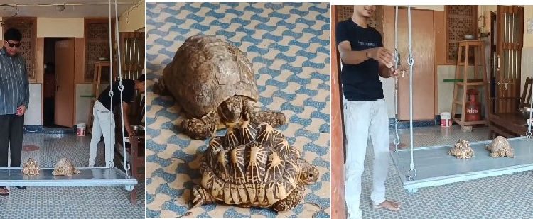ମଧ୍ୟପ୍ରଦେଶର ବୁରହାନପୁରରେ ରୁହନ୍ତି ଶାହାରୁଖ ହାଭାଲଦାର । ସେ ଘରେ ଦୁଇଟି କଇଁଛ ପାଳିଛନ୍ତି । ଏହି କଇଁଛମାନେ ଶାହାରୁଖଙ୍କ ସହିତ ପ୍ରାୟ ୨୦ ବର୍ଷ ହେଲାଣି ରହି ଆସୁଛନ୍ତି । ଶାହାରୁଖ ଓ ତାଙ୍କ ପରିବାର ଲୋକେ ସମସ୍ତେ ଏହିଦୁଇ କଇଁଛକୁ ବହୁତ ଭଲ ପାଆନ୍ତି । ସେମାନେ ବାହାରକୁ ଗଲେ ସାଙ୍ଗରେ ମଧ୍ୟ ନେଇ କି ଯାଇଥାନ୍ତି । ସେମାନଙ୍କର ଟିକେ କ’ଣ ଅସୁବିଧା ହେଲେ ପୁରା ପରିବାର ଚିନ୍ତିତ ହୋଇପଡ଼ନ୍ତି । ସବୁଠୁ ଆଶ୍ଚର୍ଯ୍ୟଜନକ କଥା ହେଲା, ଏହି ଦୁଇ କଇଁଛ ପ୍ରତ୍ୟେକ ଦିନ ୪ ଘଣ୍ଟା ଦୋଳିରେ ଝୁଲି ଥାନ୍ତି । ତାହା ପୁଣି ଅଲଗା ଅଲଗା । ସେଥିଲାଗି ଶାହାରୁଖ ଘରେ ଦୋଳି ଲଗାଇଛନ୍ତି । ଯେଉଁଦିନ ନ ଝୁଲାଇଲେ ସେମାନେ ଖାଦ୍ୟ ଖାଆନ୍ତି ନାହିଁ । ସକାଳ ଓ ସନ୍ଧ୍ୟାରେ ପ୍ର୍ରତ୍ୟେକ ଦିନ ଦୁଇଘଣ୍ଟା ଲେଖାଏଁ ସେମାନଙ୍କୁ ଦୋଳିରେ ଝୁଲାଯାଇଥାଏ । ସେମାନେ ଟମାଟୋ, କାକୁଡି ଆଦି ଖାଦ୍ୟ ଖାଇଥାନ୍ତି । ସେମାନଙ୍କୁ ପାଣି ଆକାରରେ ଟମାଟୋ ରସ ମଧ୍ୟ ଦିଆଯାଏ ।