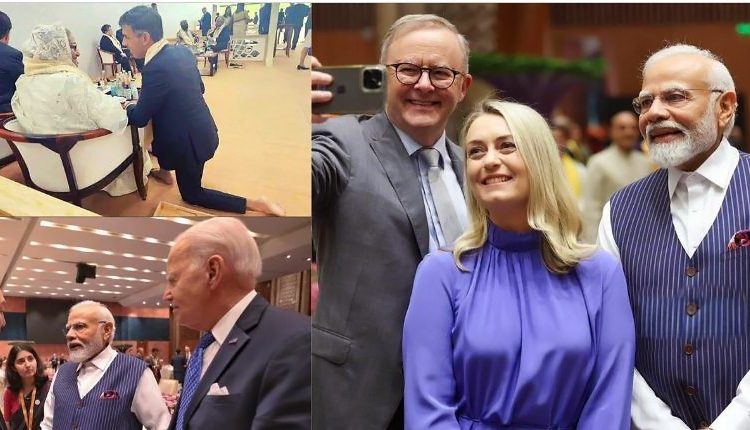 ନୂଆଦିଲ୍ଲୀ: ସରି ଯାଇଛି ଜି ୨୦ ସମ୍ମିଳନୀ । ହେଲେ  ଚର୍ଚ୍ଚା ଥମିନି । ଏହି କାର୍ଯ୍ୟକ୍ରମର ବିଭିନ୍ନ ଦିଗକୁ ନେଇ ଏବେ ଗଣମାଧ୍ୟମରେ ବେଶ  ଚର୍ଚ୍ଚା ଚାଲିଛି । ଜି ୨୦ ସମ୍ମିଳନୀର କିଛି ଫଟୋ ଏବେ ଖୁବ ଚର୍ଚ୍ଚାକୁ ଆସିଛି । କେତେବେଳେ ବ୍ରିଟେନ ପ୍ରଧାନମନ୍ତ୍ରୀ ବଂଲାଦେଶ ପ୍ରଧାନମନ୍ତ୍ରୀ ଶେଖ ହସିନାଙ୍କ ସାମ୍ନାରେ ଆଣ୍ଠୁ ମାଡି ବସିଥିବା ଦେଖିବାକୁ ମିଳିଛି ତ କେଉଁଠି ମୋଦିଙ୍କ ହାତ ଧରି ବାଇଡେନ ଫଟୋ ଉଠାଉଛନ୍ତି ପୁଣି କେଉଁଠି  ଅଷ୍ଟ୍ରେଲିଆ ପ୍ରଧାନମନ୍ତ୍ରୀ ମୋଦିଙ୍କ ସହ ନିଜ ମୋବାଇଲଣେ ସେଲ୍ଫି ନେଉଥିବା ଦେଖିବାକୁ ମିଳିଛି । ଏହି ସବୁ ଫଟୋ ସମସ୍ତଙ୍କ ମନକୁ ଛୁଇଁ ଯାଇଛି ।