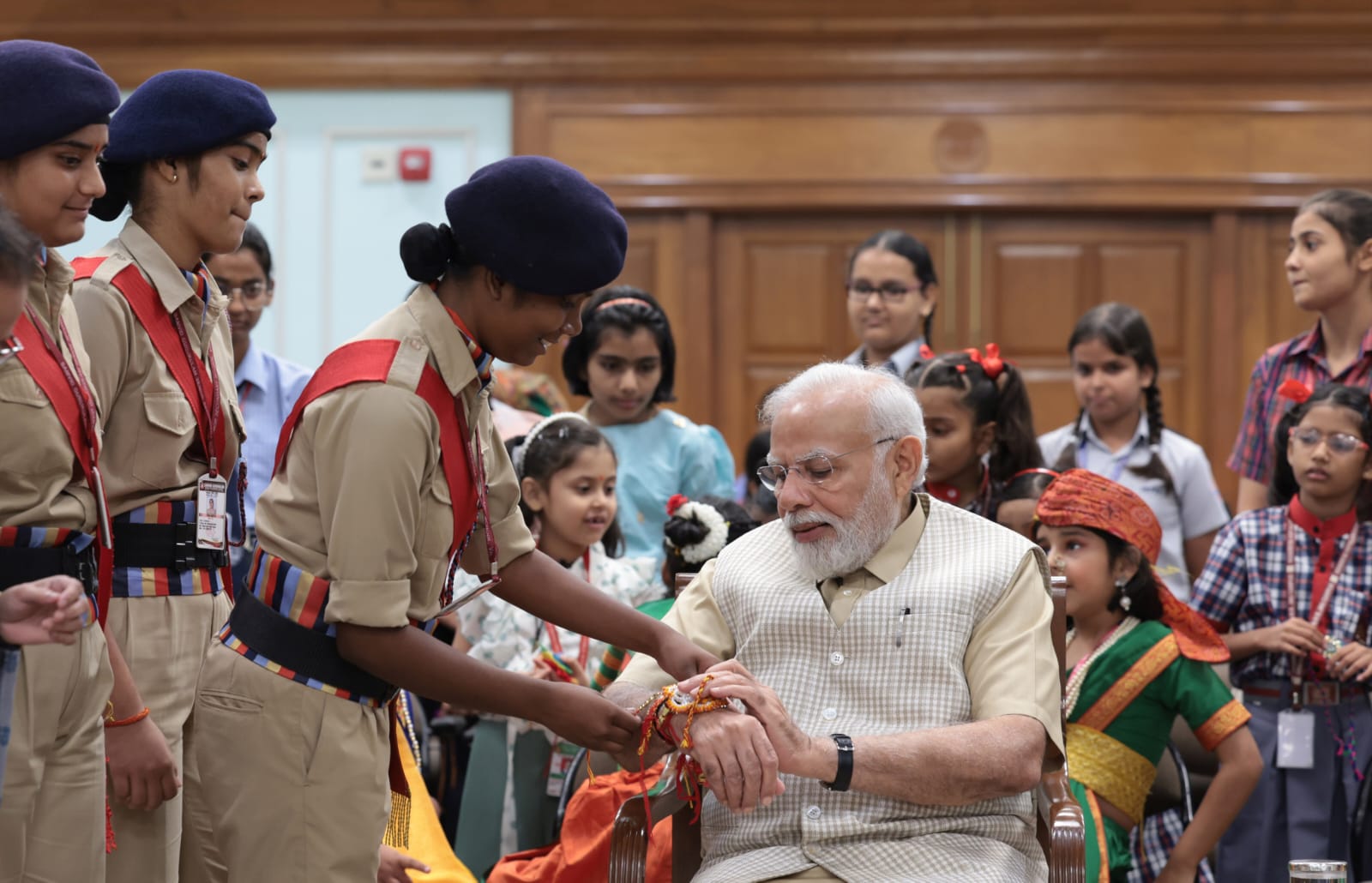 ଛୋଟ ଛୋଟ ପିଲାମାନେ ପ୍ରଧାନମନ୍ତ୍ରୀଙ୍କ ହାତରେ ରାଖୀ ବାନ୍ଧି ଥିଲେ । ପ୍ରଧାନମନ୍ତ୍ରୀ ପିଲାଙ୍କ ସହ ବିଭିନ୍ନ ପ୍ରସଙ୍ଗରେ ଆଲୋଚନା କରିଥିଲେ। ପିଲାମାନେ ଚନ୍ଦ୍ରଯାନ-୩ ମିଶନର ସାମ୍ପ୍ରତିକ ସଫଳତା ଉପରେ ସେମାନଙ୍କର ସକାରାତ୍ମକ ଭାବନା ସେୟାର କରିଥିଲେ । ଆଗାମୀ ଆଦିତ୍ୟ ଏଲ୍ -୧ ମିଶନ କୁ ନେଇ ମଧ୍ୟ ଉତ୍ସାହ ପ୍ରକାଶ କରିଥିଲେ ।