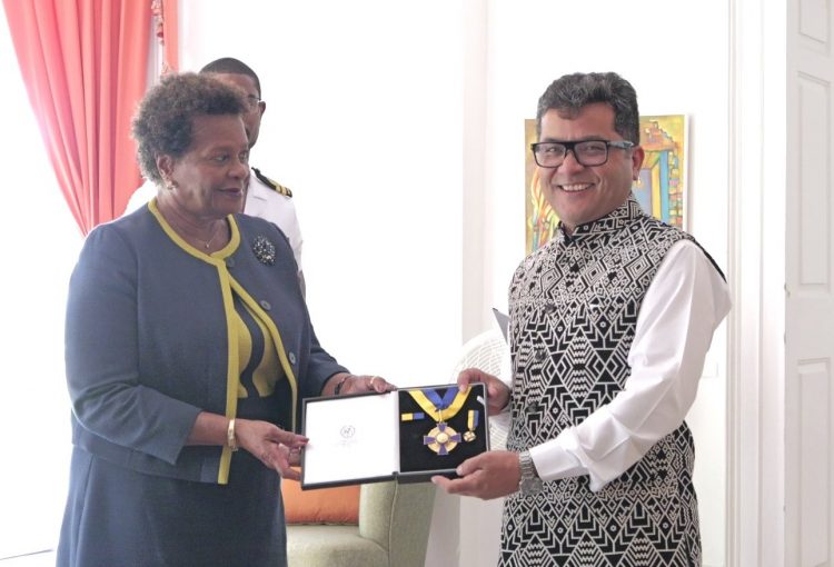 ବୈଦେଶିକ ବ୍ୟାପାର ମନ୍ତ୍ରଣାଳୟ ପକ୍ଷରୁ ଏକ ବିବୃତ୍ତିରେ କୁହାଯାଇଛି ଯେ ବାରବାଡୋସର ବ୍ରିଜଟାଉନରେ ଆୟୋଜିତ ଏକ ଉତ୍ସବରେ ପ୍ରଧାନମନ୍ତ୍ରୀ ମୋଦିଙ୍କ ପକ୍ଷରୁ ବୈଦେଶିକ ବ୍ୟାପାର ରାଷ୍ଟ୍ରମନ୍ତ୍ରୀ ପବିତ୍ର ମାର୍ଗେରିଟା ଏହି ପୁରସ୍କାର ଗ୍ରହଣ କରିଛନ୍ତି।