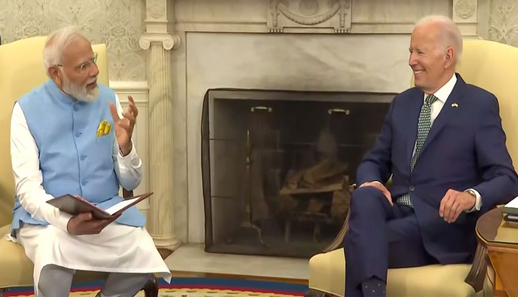 ନ୍ୟୁୟର୍କ: ଆମେରିକା ଗସ୍ତର ଦ୍ୱିତୀୟ ଦିନରେ ପ୍ରଧାନମନ୍ତ୍ରୀ ନରେନ୍ଦ୍ର ମୋଦୀ ହ୍ୱାଇଟ ହାଉସରେ ପହଞ୍ଚିଥିଲେ। ଏଠାରେ ତାଙ୍କୁ ରେଡ କାର୍ପେଟରେ ଏକ ବଡ଼ ସ୍ୱାଗତ କରାଯାଇଥିଲା। ଏହି ସମୟରେ ଆମେରିକାର ରାଷ୍ଟ୍ରପତି ଜୋ ବାଇଡେନ ଏବଂ ତାଙ୍କ ପତ୍ନୀ ଜିଲ ବାଇଡେନ ମୋଦୀଙ୍କୁ ସ୍ବାଗତ କରିଥିଲେ। ଏଥିସହ ରାଷ୍ଟ୍ରପତି ବାଇଡେନ ଏବଂ ପ୍ରଧାନମନ୍ତ୍ରୀ ମୋଦୀଙ୍କ ମଧ୍ୟରେ ଦ୍ୱିପାକ୍ଷିକ ଆଲୋଚନା ପରେ ମିଳିତ ବିବୃତ୍ତି ଜାରି କରାଯାଇଛି। ଏହି ସମୟରେ ମୋଦୀ କହିଛନ୍ତି ଯେ ଭାରତୀୟ ଆମେରିକୀୟମାନେ ଆମର ସମ୍ପର୍କର ସବୁଠାରୁ ବଡ ଶକ୍ତି। ସେ କହିଛନ୍ତି ଯେ ଆତଙ୍କବାଦ ବିରୋଧରେ ଭାରତ ଏବଂ ଆମେରିକା ଏକାଠି ଅଛନ୍ତି। ଆମେ ଆର୍ଟେମିସ୍ ଚୁକ୍ତିରେ ଯୋଗଦେବାକୁ ରାଜି ହୋଇଛୁ। ଆମେ ପରସ୍ପର ସହଯୋଗରେ ଏକ ନୂଆ ପଜକ୍ଷେପ ନେଇଛୁ।