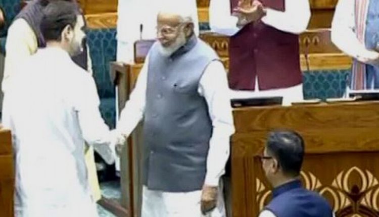 ସଂସଦରେ ଦୁର୍ଲଭ ଦୃଶ୍ୟ! ହାତ ମିଳାଇଲେ ପିଏମ ମୋଦୀ ରାହୁଲ ଗାନ୍ଧୀ