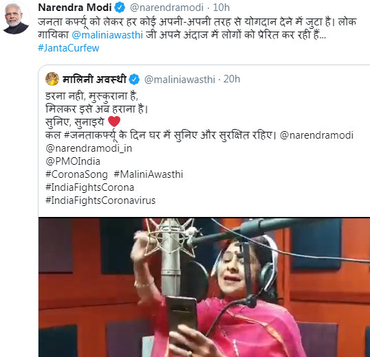 କରୋନା ସଚେତନତା ସଙ୍ଗୀତ ଗାୟକମାନଙ୍କୁ ପ୍ରଧାନମନ୍ତ୍ରୀଙ୍କ ପ୍ରଶଂସା