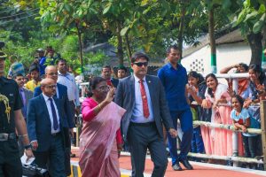 ପାରାଦୀପ: ବୋଇତ ବନ୍ଦାଣ ଉତ୍ସବରେ ଯୋଗଦେଲେ ମହାମହିମ ରାଷ୍ଟ୍ରପତି ଶ୍ରୀମତୀ ଦ୍ରୌପଦୀ ମୁର୍ମୁ। ଆଜି ପାରାଦୀପ ଗସ୍ତ ବେଳେ ହେଲିକ୍ୟାପ୍ଟରରେ ଦିନ ୯ଟା ୩୦ମିନିଟରେ ଗୋପବନ୍ଧୁ ଷ୍ଟାଡିୟମ ପହଞ୍ଚିଥିଲେ। ସେଠାରୁ ବୋଇତ ବନ୍ଦାଣ ଉତ୍ସବରେ ଯୋଗ ଦେବାକୁ କାରକେଟରେ ପାରାଦୀପ ନିଷିଦ୍ଧାଞ୍ଚଳକୁ ଯାଉଥିବା ବେଳେ ନୂଆବଜାର ସାଇ ମନ୍ଦିର ପାଖରେ ଗାଡିରୁ ଓହ୍ଲାଇ ଚାଲିଚାଲି ଗଲେ ରାଷ୍ଟ୍ରପତି ଦ୍ରୌପଦୀ ମୁର୍ମୁ।