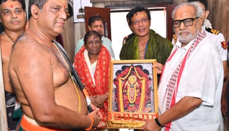 କଟକ: ମଙ୍ଗଳବାରଠାରୁ ତିନି ଦିନିଆ ଓଡ଼ଶା ଗସ୍ତରେ ଆସି ଆଜି କଟକରେ ପହଞ୍ଚିଛନ୍ତି ରାଷ୍ଟ୍ରପତି ଦ୍ରୌପଦୀ ମୁର୍ମୁ । କଡା ସୁରକ୍ଷା ମଧ୍ୟରେ ସଡ଼କ ପଥରେ ଆଜି କଟକ ଯାଇଛନ୍ତି ରାଷ୍ଟ୍ରପତି । କଟକରେ ପହଞ୍ଚି ପ୍ରଥମେ ଚଣ୍ଡୀ ମନ୍ଦିର ଯାଇଥିଲେ । ସେଠାରେ ପାଖାପାଖି ୧୫ ମିନିଟ୍ ରହି ମା’ଙ୍କ ପୂଜାର୍ଚ୍ଚନା କରିଥିଲେ ରାଷ୍ଟ୍ରପତି ।