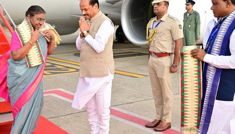 ଭୁବନେଶ୍ଵର: ଭୁବନେଶ୍ବରରେ ପହଞ୍ଚିଲେ ରାଷ୍ଟ୍ରପତି ଦ୍ରୌପଦୀ ମୁର୍ମୁ । ଭାରତୀୟ ବାୟୁସେନାର ସ୍ବତନ୍ତ୍ର ବିମାନରେ ଭୁବନେଶ୍ଵରରେ ପହଞ୍ଚିଲେ ମହାମହିମ । ବିଜୁ ପଟ୍ଟନାୟକ ବିମାନ ବନ୍ଦରରେ ମହାମହିମ ରାଷ୍ଟ୍ରପତିଙ୍କୁ ସ୍ବାଗତ କରିଛନ୍ତି ରାଜ୍ୟପାଳ ରଘୁବର ଦାସ, ମୁଖ୍ୟମନ୍ତ୍ରୀ ମୋହନ ଚରଣ ମାଝୀ, ମୁଖ୍ୟ ଶାସନ ସଚିବ ମନୋଜ ଆହୁଜା, ପୁଲିସ ନିର୍ଦେଶକ ଅରୁଣ ଷଡଙ୍ଗୀ, ଭୁବନେଶ୍ୱର ମେୟର ସୁଲୋଚନା ଦାସ ଏବଂ ପୁଲିସ କମିଶନର ସଞ୍ଜୀବ ପଣ୍ଡା ।