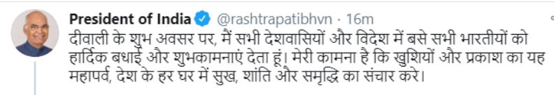 ଦୀପାବଳି ଶୁଭେଚ୍ଛା ଜଣାଇଲେ ରାଷ୍ଟ୍ରପତି, ପ୍ରଧାନମନ୍ତ୍ରୀ ଓ ମୁଖ୍ୟମନ୍ତ୍ରୀ