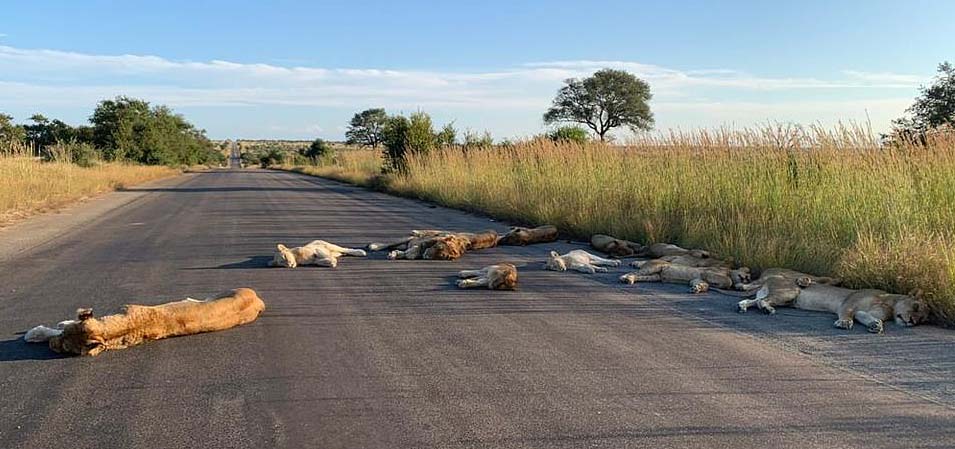 ଡର୍ବାନ: ଦକ୍ଷିଣ ଆଫ୍ରିକାର କୁର୍ଗର ଜାତୀୟ ପାର୍କରେ କରୋନା ଭାଇରସର କରାଳ ଛାୟା ମଧ୍ୟରେ ଏକ ଅଦ୍ଭୁତପୂର୍ଣ୍ଣ ଦୃଶ୍ୟ ଦେଖିବାକୁ ମିଳିଛି । ପୂର୍ବରୁ ଏହି ପାର୍କରେ ରହୁଥିବା ସିଂହମାନଙ୍କୁ ଦେଖିବା ପାଇଁ ବିଭିନ୍ନ ସ୍ଥାନରୁ ପର୍ଯ୍ୟଟକ ଓ ପଶୁପ୍ରେମୀମାନେ ଆସିଥାନ୍ତିି । ତେବେ ଏବେ ଅଲଗା ପ୍ରକାର ଦୃଶ୍ୟ ଦେଖିବାକୁ ମିଳିଛି । କୁର୍ଗର ପାର୍କ ରାସ୍ତାରେ ସିଂହମାନେ ନିର୍ଭୟରେ ଶୋଇ ରହିଛନ୍ତି । ପୂର୍ବରୁ ଏହି ରାସ୍ତାରେ ଗାଡି ଯିବା ଆସିବା କରୁଥିବାରୁ ସିଂହମାନେ ରାସ୍ତା ଉପରେ ବେଶି ସମୟ ରହି ନ ଥାନ୍ତି ।