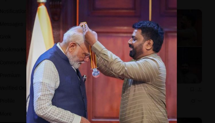ନୂଆଦିଲ୍ଲୀ: ପ୍ରଧାନମନ୍ତ୍ରୀ ମୋଦିଙ୍କୁ ଶ୍ରୀଲଙ୍କାର ସର୍ବୋଚ୍ଚ ନାଗରିକ ସମ୍ମାନ । ମୋଦିଙ୍କୁ ‘ମିତ୍ର ବିଭୂଷଣ’ରେ ସମ୍ମାନରେ ସମ୍ମାନିତ କଲେ ଶ୍ରୀଲଙ୍କା ସରକାର । ଦୁଇ ଦେଶ ମଧ୍ୟରେ ସଂପର୍କ ସୁଦୃଢ଼ ପାଇଁ ଅବଦାନକୁ ଦୃଷ୍ଟିରେ ରଖି ସମ୍ମାନିତ କରିଛନ୍ତି ଶ୍ରୀଲଙ୍କା ସରକାର ।