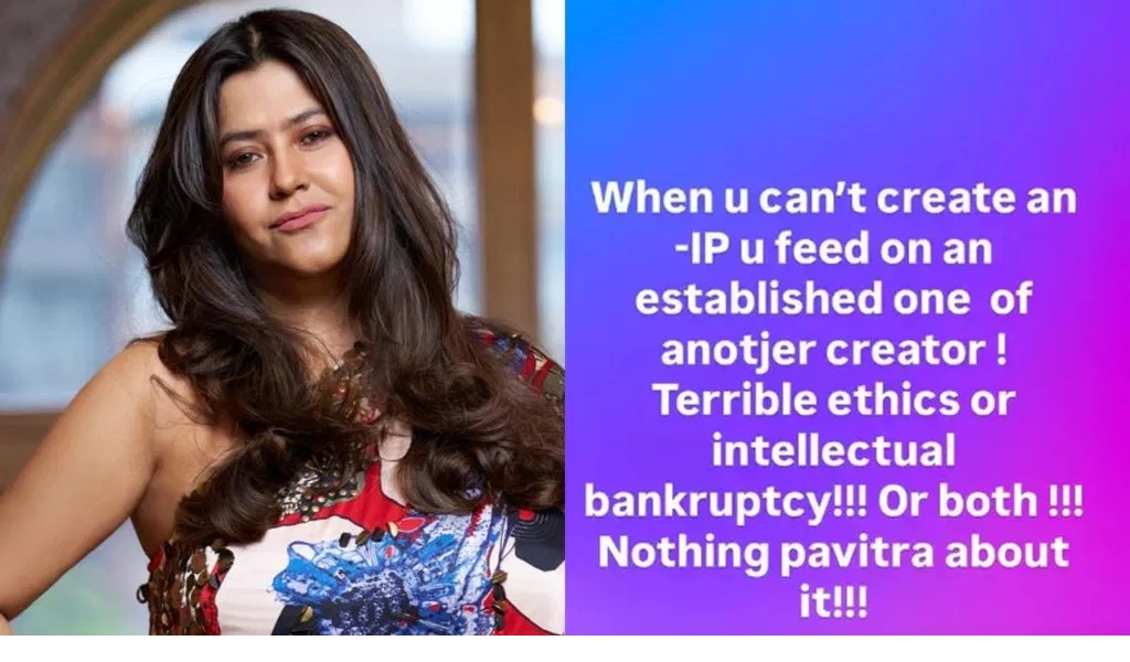 ଏକତା କପୂର ସୋସିଆଲ ମିଡିଆରେ ନିଜର କ୍ରୋଧ ପ୍ରକାଶ କରି ଲେଖିଛନ୍ତି, ‘ଯେତେବେଳେ ଆପଣ ନିଜର ଏକ ନୂତନ ପ୍ରୋଗ୍ରାମ କରିପାରୁନାହାନ୍ତି   ସେତେବେଳେ ଆପଣ ଅନ୍ୟ ଜଣେ ନିର୍ମାତାଙ୍କ ପୂର୍ବ ପ୍ରୋଜାକ୍ଟ ଉପରେ ନିର୍ଭର କରନ୍ତି। ଯଦି କିଛି ନୂଆ ଚିନ୍ତାଧାରା ଆସୁନାହିଁ ତେବେ କ’ଣ ପାଇଁ ନିଜକୁ ନିର୍ମାତା କହୁଛ ଏବଂ କପି କରୁଛ?  ମୋ ଶୋ କୁ ଚୋରି କରି ନିଜର ପ୍ରୋଜେକ୍ଟରେ ସାମିଲ କରି ଟଙ୍କା ରୋଜଗାର କରିବା କେତେ ଦୁର ଠିକ୍ । ଏକ ପୁରୁଣା କଲ୍ଟ ଶୋ’ର ନାମ ବ୍ୟବହାର କରିବା ନୂତନ ନିର୍ମାତାଙ୍କର ଏକ ଦୁର୍ବଳତା। ତେବେ ଏପରି କିଛି କହି ଏକତା କପୂର ନିର୍ମାତାଙ୍କ ଉପରେ ବର୍ଷିଛନ୍ତି । ଦିର୍ଘ୧୫ ବର୍ଷ ପୂର୍ବେ ସୁଶାନ୍ତ ସିଂହ ରାଜପୁତ ଏବଂ ଅଙ୍କିତା ଲୋଖଣ୍ଡେଙ୍କ ସହିତ  ଏକତା ତିଆରି କରିଥିବା ଏହି ଶୋ ବେଶ ଚହଳ ସୃଷ୍ଟି କରିଥିଲା ।