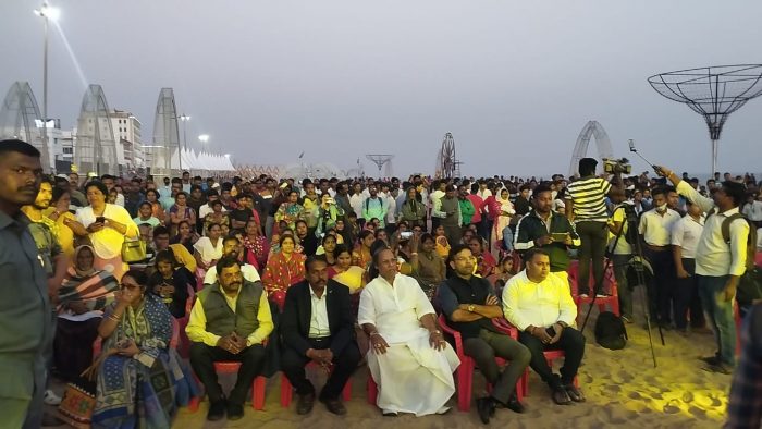 ପୁରୀ : ହକି ବିଶ୍ୱକପର ଉଦଘାଟନ କାର୍ଯ୍ୟକ୍ରମ ଆଜି ଅପରାହ୍ନରେ ଆରମ୍ଭ ହୋଇଛି । ପୁରୀ ଭିକ୍ଟୋରିଆ ହୋଟେଲ ସମ୍ମୁଖ ବେଳାଭୂମି “ସିଟି ଫେଷ୍ଟ ଇନ ଓଲିସ୍ ଲ୍ୟାଣ୍ଡ”ରେ ଏକ ଏଲଇଡି ଟିଭି ମାଧ୍ୟମରେ ଏହି ଉଦଘାଟନ କାର୍ଯ୍ୟକ୍ରମର ସିଧା ପ୍ରସାରଣ କରାଯାଇଥିଲା । ଜିଲ୍ଲାପାଳ ସମର୍ଥ ବର୍ମା ଓ ଦଇତାପତି ନିଯୋଗର ସମ୍ପାଦକ ରାମକୃଷ୍ଣ ଦାସମହାପାତ୍ର ଏହାକୁ ପ୍ରଦୀପ ପ୍ରଜ୍ୱଳନ କରି ଉଦଘାଟନ କରିଥିଲେ । ପ୍ରଦୀପ ପ୍ରଜ୍ୱଳନ ସମୟରେ ବେଦଧ୍ୱନି ଓ ଶଙ୍ଖ ନାଦରେ ପରିବେଶ ପ୍ରକମ୍ପିତ ହୋଇଥିଲା । ହଜାର ହଜାର ଦର୍ଶକ ଉପସ୍ଥିତ ରହି ଏହି ଉଦଘାଟନ କାର୍ଯ୍ୟକ୍ରମକୁ ଉପଭୋଗ କରିବା ସହ ସଙ୍ଗୀତ ଓ ନୃତ୍ୟ ର ତାଳେ ତାଳେ ଚକ ଦେ ଇଣ୍ଡିଆ ଧ୍ୱନି ଦେଇ ଝୁମିଥିଲେ । ଏହି କାର୍ଯ୍ୟକ୍ରମରେ ପର୍ଯ୍ୟଟକ ମାନେ ଯୋଗ ଦେଇ ଭରପୁର ମଜା ନେଇଥିଲେ ।