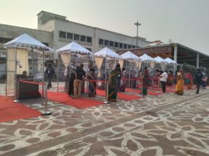 ପୁରୀ: ଦୀର୍ଘ ୯ ମାସ ପରେ ବଡ଼ଦେଉଳର ରତ୍ନ ସିଂହାସନରେ ଆଖି ଦେଖିଲା ଚକାନୟନ । ଭକ୍ତ ଓ ଭଗବାନଙ୍କ ମିଳିନ ହେଲା । ଆଜିଠାରୁ ଶ୍ରୀଜିଉଙ୍କୁ ଦର୍ଶନ କରିଛନ୍ତି ପୁରୀ ବାସିନ୍ଦା । ମାର୍କେଟ ଛକଠାରୁ ବ୍ୟାରିକେଡ୍ ଦେଇ ଭକ୍ତମାନେ ସିଂହଦ୍ୱାର ଦେଇ ମନ୍ଦିର ଭିତରେ ପ୍ରବେଶ କରୁଛନ୍ତି । ପ୍ରବେଶ ପୂର୍ବରୁ ସାନିଟାଇଜ ହେବା ସହ ପରିଚୟପତ୍ର ଓ ଟୋକନ ଦେଖାଇ ଭିତରକୁ ଯାଉଛନ୍ତି ଭକ୍ତ ।