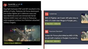 ନୂଆଦିଲ୍ଲୀ: ଭାରତର ଏୟାର ଷ୍ଟ୍ରାଇକ୍ ପରେ, ପାକିସ୍ତାନ ସୋସିଆଲ ମିଡିଆରେ ମିଛ ପ୍ରଚାର କରିବା ଆରମ୍ଭ କରିଦେଇଛି । ପାକିସ୍ତାନ ସମର୍ଥିତ ବ୍ୟବହାରକାରୀମାନେ ଭାରତୀୟ ବିମାନକୁ ଗୁଳି କରି ଖସାଇ ଦେବା ଏବଂ ଭାରତୀୟ ସାମରିକ ପ୍ରତିଷ୍ଠାନକୁ ଧ୍ୱଂସ କରିବା ସମେତ ବିଭିନ୍ନ ପ୍ରକାରର ମିଥ୍ୟା ଦାବି କରିଥିଲେ । କିନ୍ତୁ ଏହି ସମସ୍ତ ଦାବି ଧୀରେ ଧୀରେ ଭୁଲ ପ୍ରମାଣିତ ହେଉଛି ।