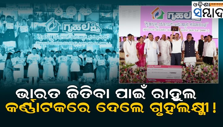 କର୍ଣ୍ଣାଟକ ସରକାରଙ୍କ ଏହି ଯୋଜନାରେ ପରିବାରର ମହିଳା ମୁଖ୍ୟମାନଙ୍କୁ ମାସିକ ଦୁଇ ହଜାର ଟଙ୍କା ମିଳିବ। ଏହି କାର୍ଯ୍ୟକ୍ରମର ଉଦଘାଟନ ଉତ୍ସବରେ ରାହୁଲ ଗାନ୍ଧୀଙ୍କ ସମେତ କଂଗ୍ରେସ ଜାତୀୟ ସଭାପତି ମଲ୍ଲିକାର୍ଜୁନ ଖଡ଼ଗେ ଯୋଗ ଦେଇଥିଲେ।
