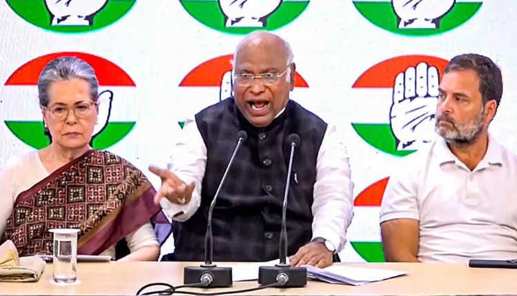 ଗୁରୁବାର କଂଗ୍ରେସ ପକ୍ଷରୁ ଆୟୋଜିତ ଏହି ସାମ୍ବାଦିକ ସମ୍ମିଳନୀରେ କଂଗ୍ରେସ ସଭାପତି ମଲ୍ଲିକାର୍ଜୁନ ଖଡଗେ, ପୂର୍ବତନ ଅଧ୍ୟକ୍ଷ ସୋନିଆ ଗାନ୍ଧି ଏବଂ ରାହୁଲ ଗାନ୍ଧି ମଧ୍ୟ ଏଥିରେ ଉପସ୍ଥିତ ଥିଲେ ।